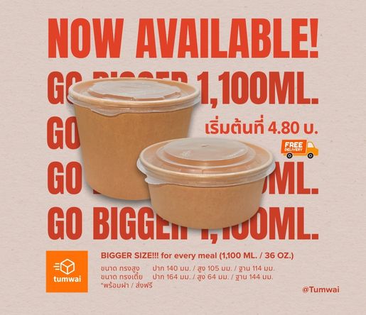 ชามกระดาษคราฟต์ขนาด 1,100 ml ออกแบบมาสำหรับธุรกิจอาหารทุกประเภท แข็งแรง ทนทาน ไม่ซึม พร้อมฝาปิดแน่น เหมาะสำหรับอาหารร้อน–เย็น และเดลิเวอรี