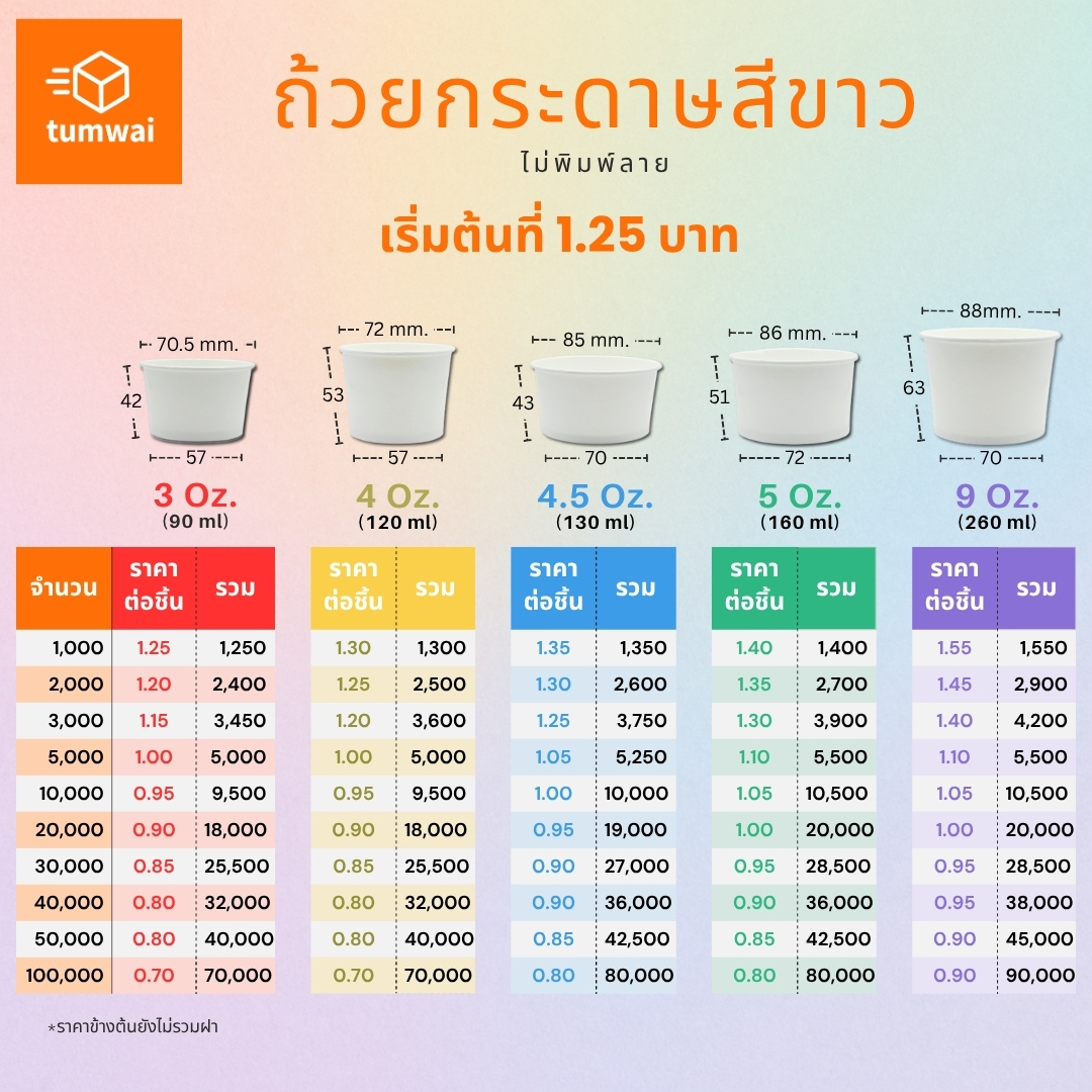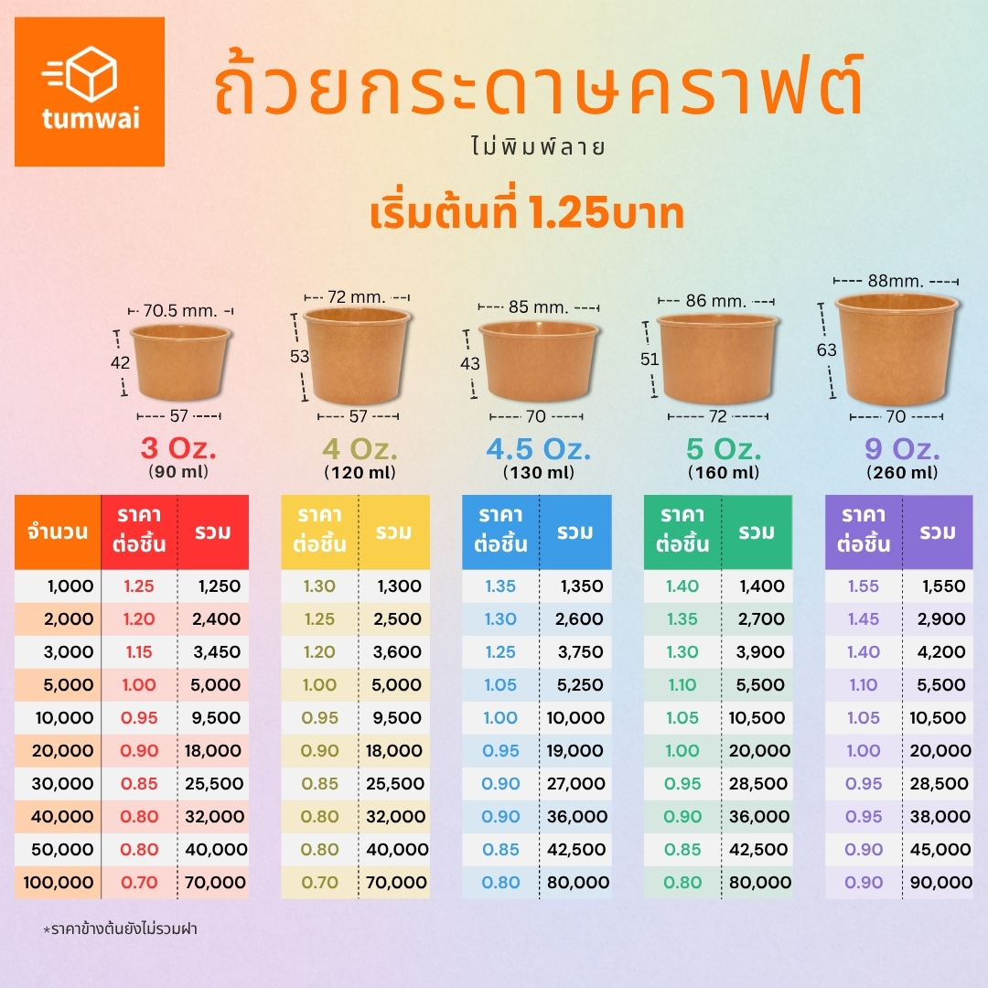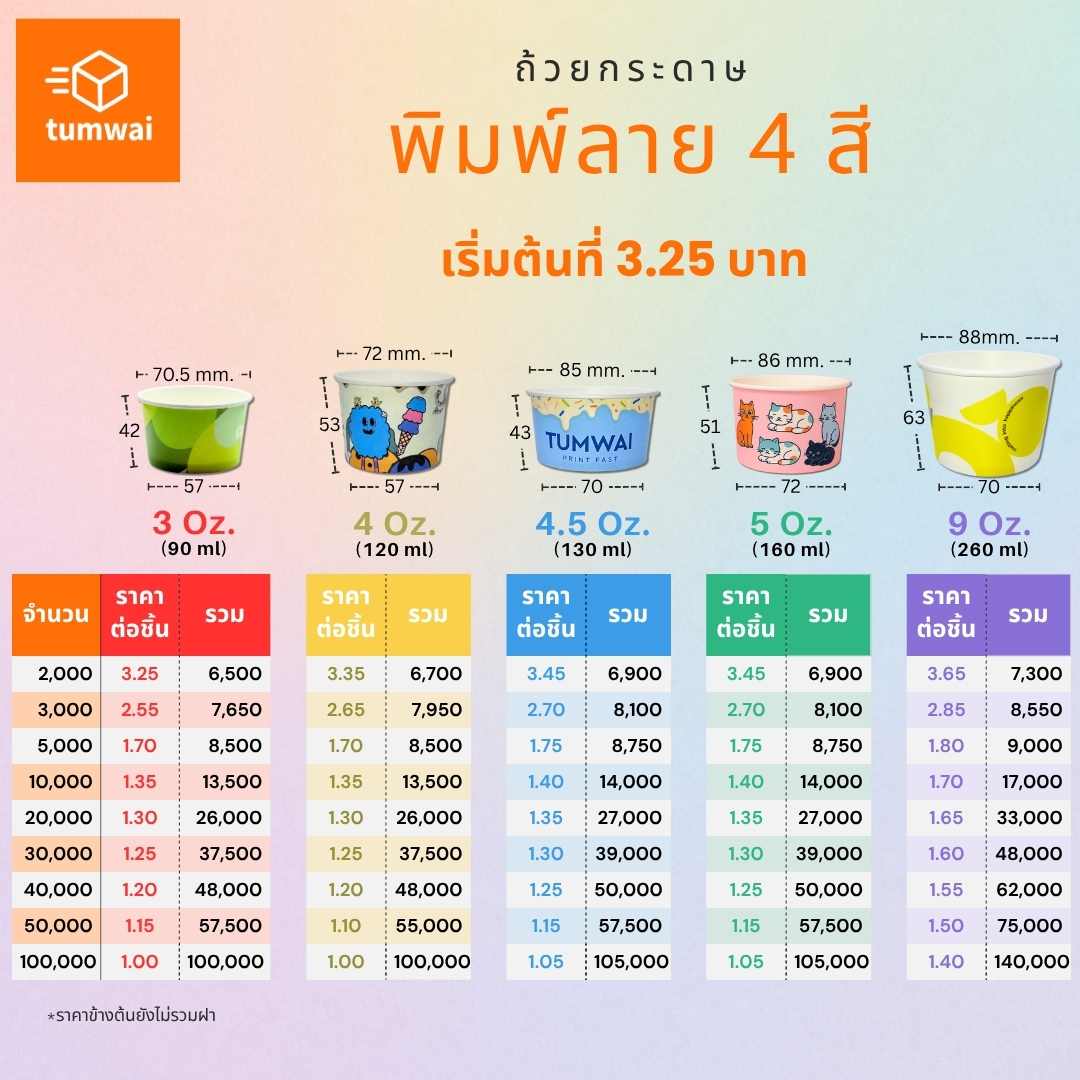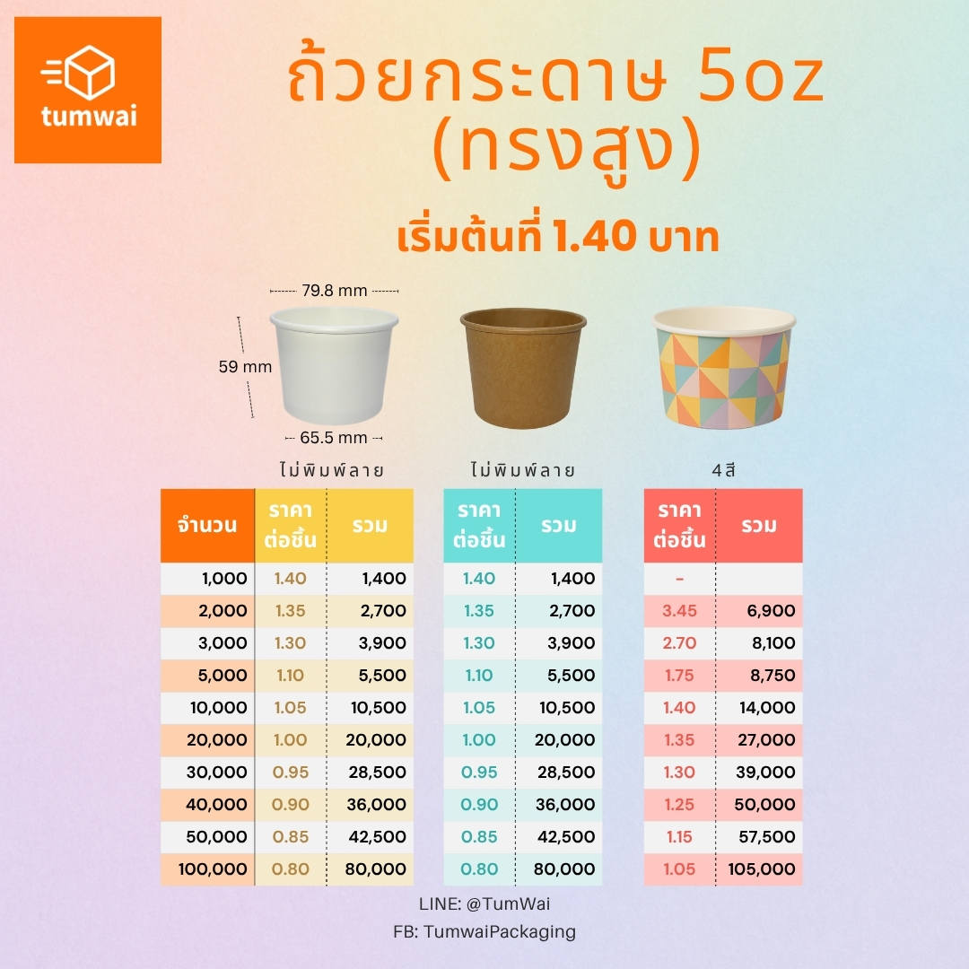 - ผลิตได้ทั้ง สีขาว / คราฟท์ / พิมพ์ 4 สี
