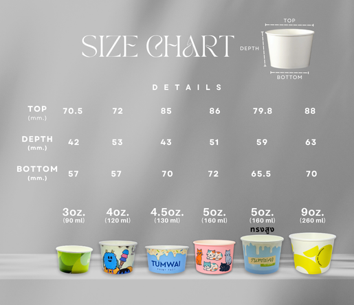 สามารถเลือกขนาดได้ตั้งแต่ 3 oz. – 9 oz. เหมาะสำหรับร้านไอศกรีม