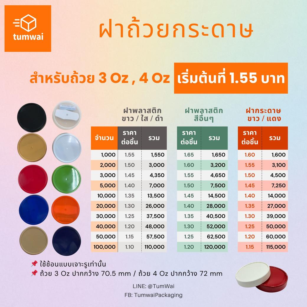 - ฝาพลาสติก สีขาว / สีดำ / ใส