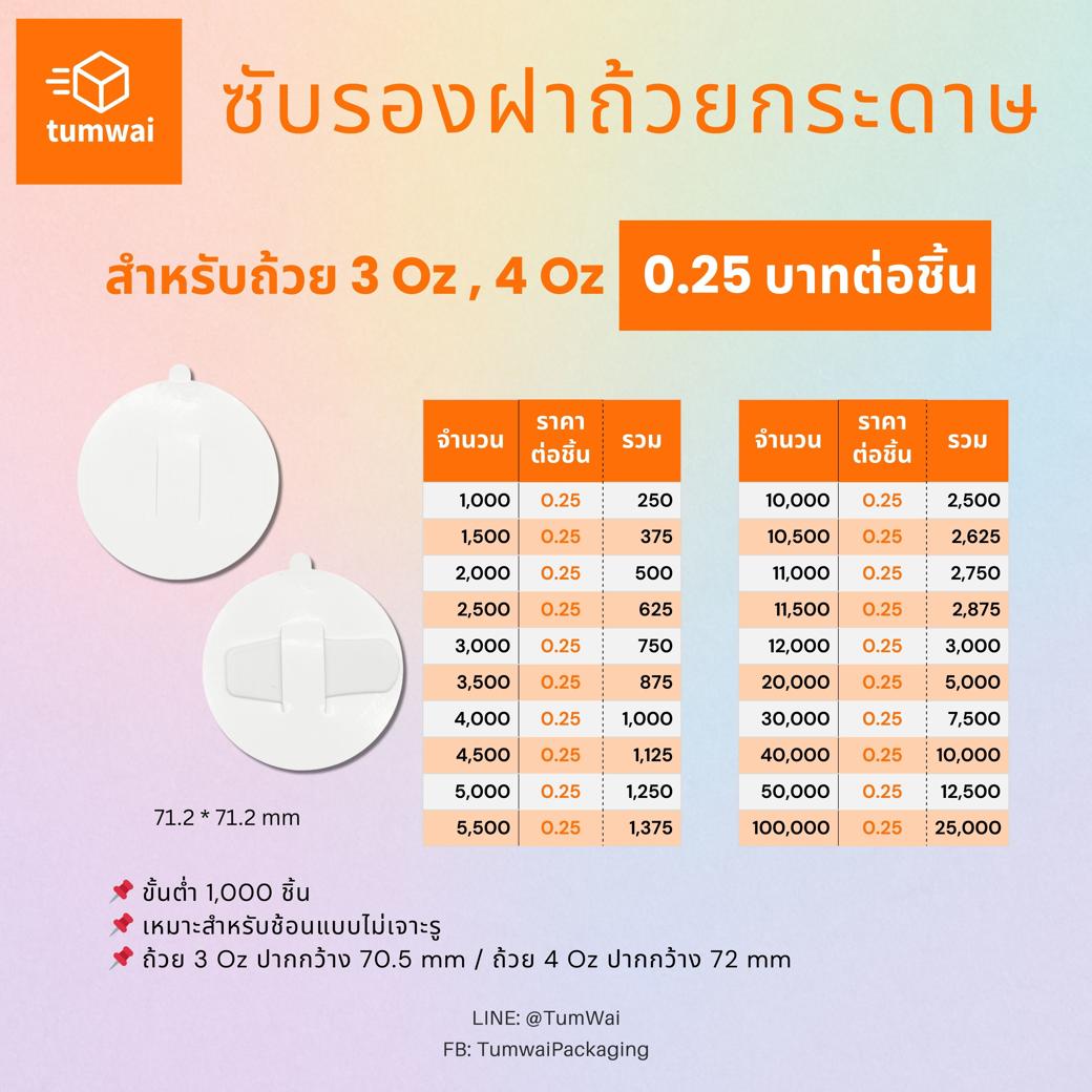เราผลิตและจำหน่าย ซับรองฝาถ้วยกระดาษ สำหรับถ้วยขนาด 3 oz. (90 ml.) และ 4 oz. (120 ml.)