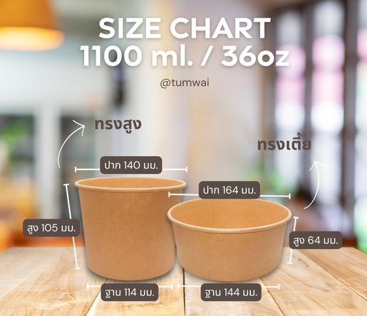 🥣 ชามกระดาษคราฟต์ 1,100 ml พร้อมฝา